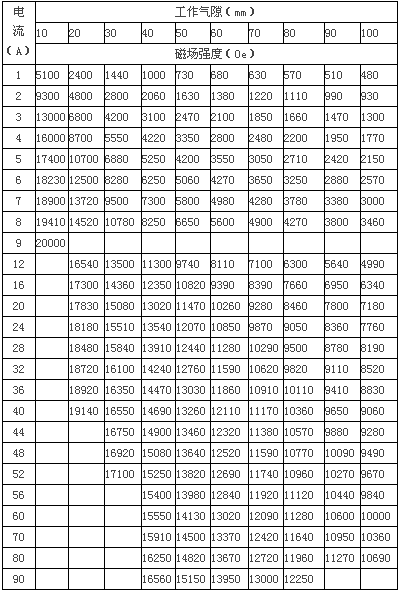 磁場場強(qiáng) :10000 Oe(氣隙100mm時(shí))